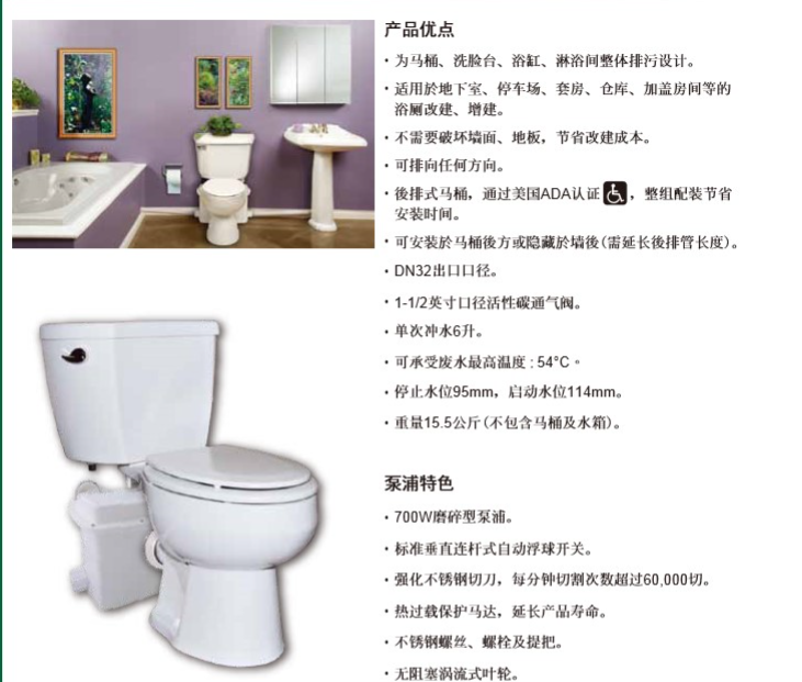 韩国贝齐BQ快冲系列污水提升器 BQ202快冲二代,为紧凑设计之小型污水提升器,其超强不锈钢切刀,每分钟切割次数超过60000切,可能掉入座便器的物体如:卫生纸、纸巾、塑料袋、卫生巾、尿不湿、安全套等,皆可被顺利切碎排出。本产品适用于墙排式座便器,其两侧下面之进水口,可连接洗手盆、浴缸或淋浴房之排水。不同于其他市售产品,本产品防护等级为IP68,所有零部件皆为高度防水设计。 提升高度7m,最大流量18th,功率800w,最高污水温度54度。 本产品由韩国贝齐集团授权杭州闻明机电设备有限公司为国内总代理,欢迎各经销商批发。更多型号请咨询。