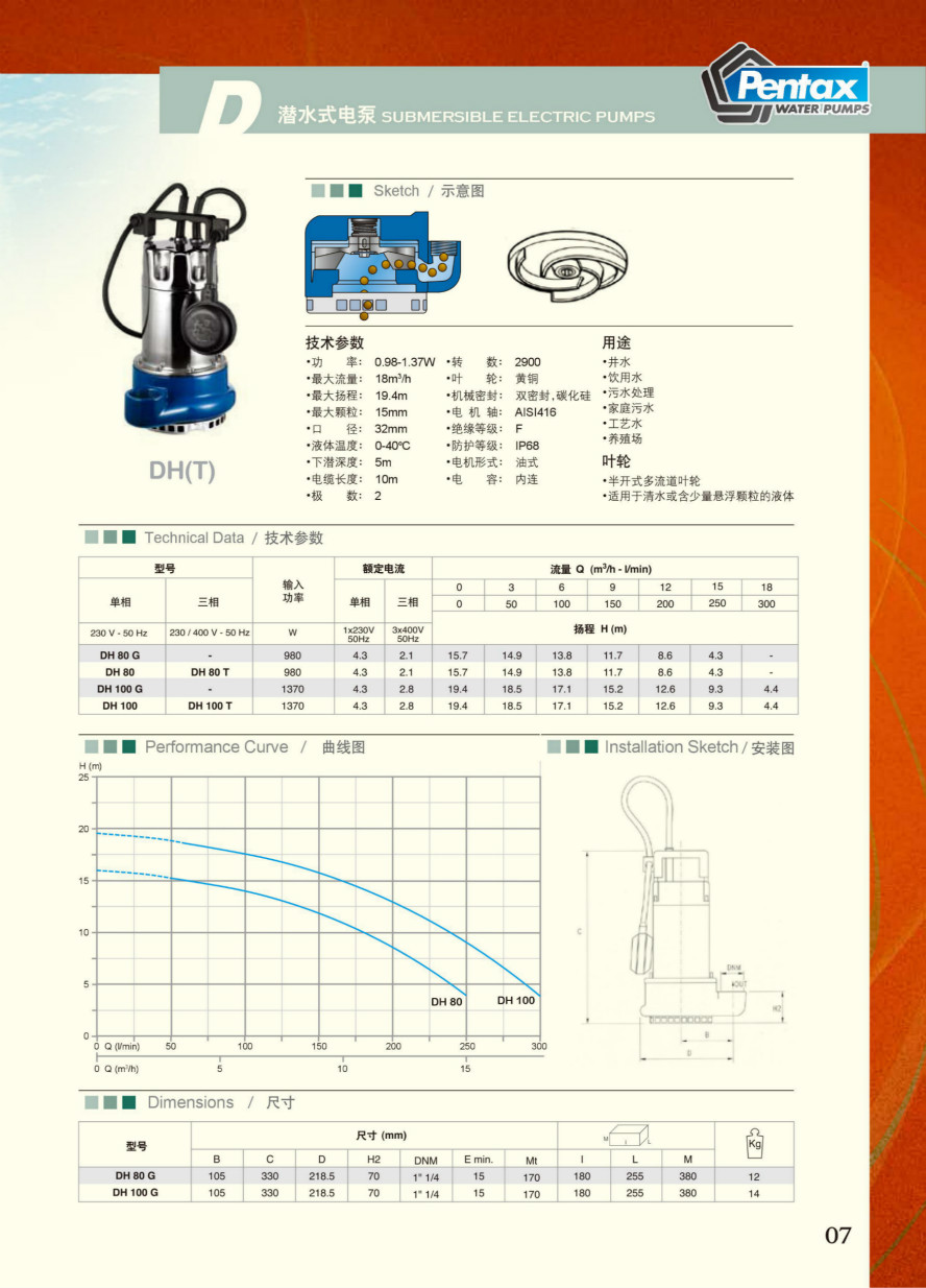 DH(T) 饮用水井水潜水泵