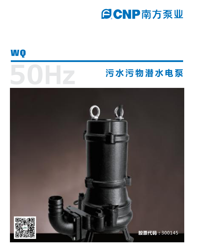 产品说明 污水污物潜水电泵由电机与泵两部分组成,两者通过油室及机械密封组件隔开,分固定式自动耦合安装和移动安装。