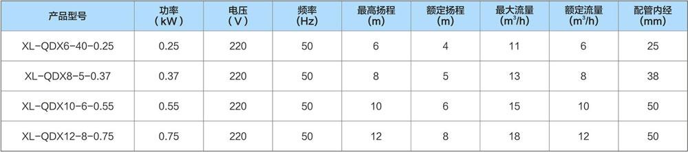 QDX小型潜水电泵是异步电动机和离心式水泵合成一体的小型电力排灌设备, 特别适用于广大农村井下抽水、农田排灌、园林浇灌、家庭生活供水、也可用于排除工业积水、建筑施工给排水及养殖业等场合。